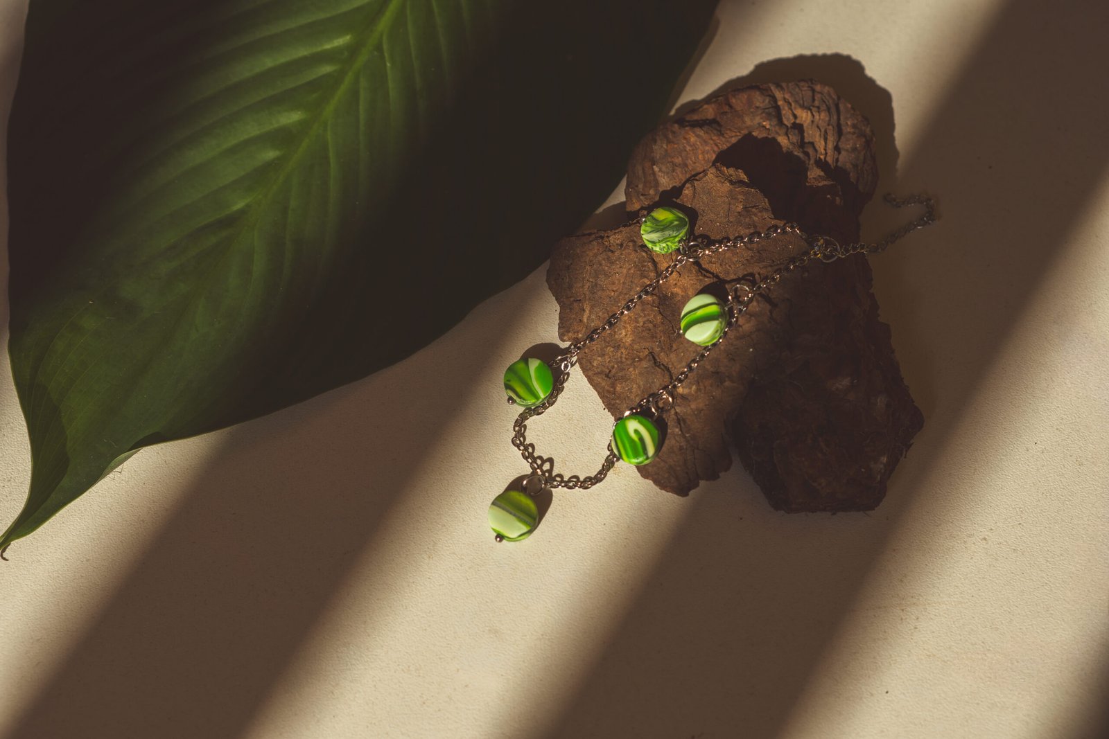 Os delicados pingentes em cerâmica plástica trazem a refrescante paleta verde (oliva, hortelã e pistache), dispostos graciosamente sobre uma corrente de aço inoxidável com extensora.